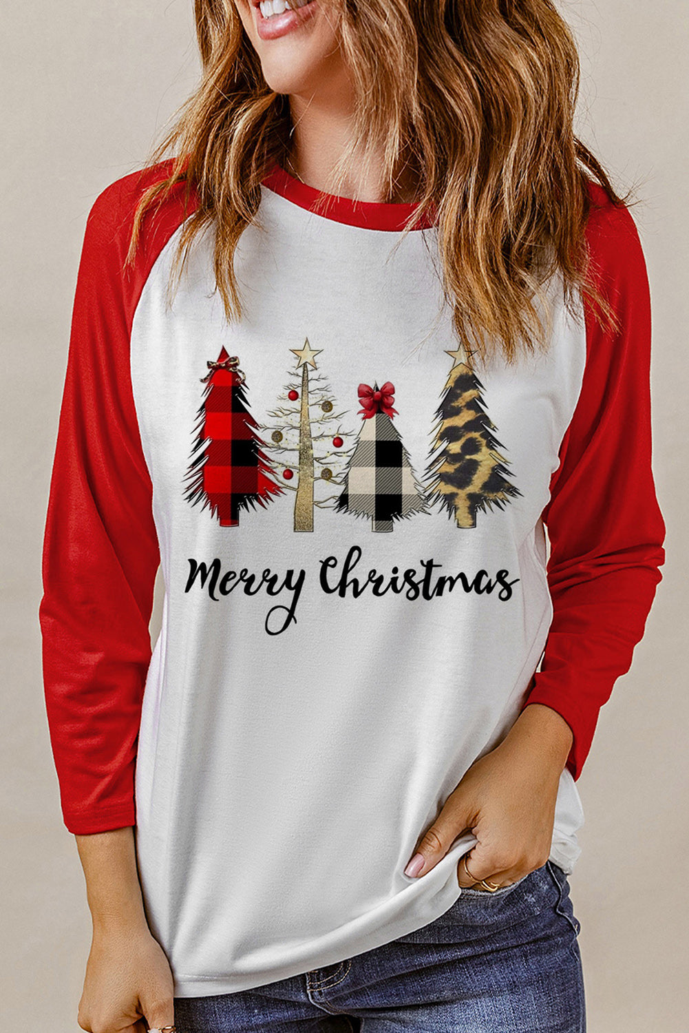 Christmas Tree Graphic Round Neck Long Sleeve T-Shirt