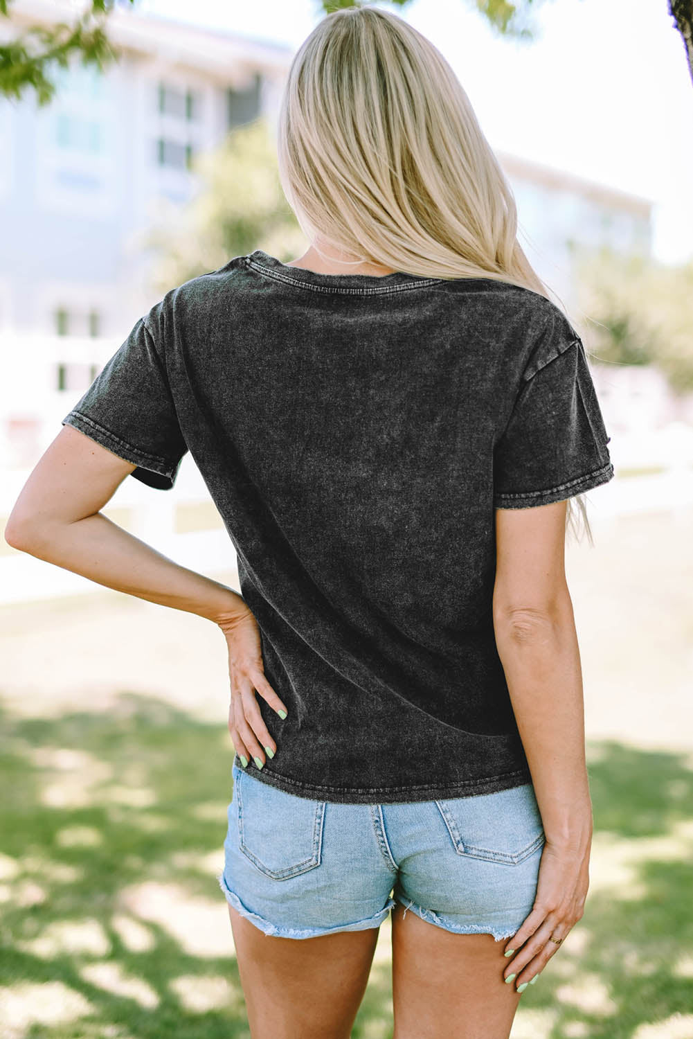 USA Cutout Round Neck Short Sleeve T-Shirt