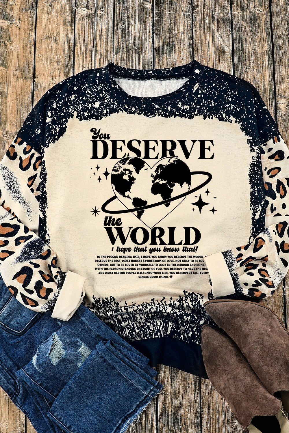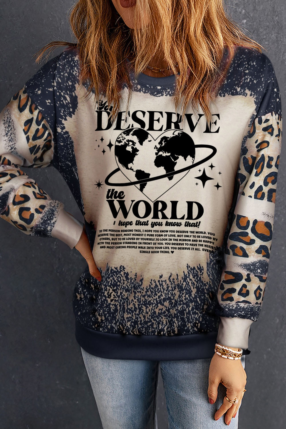 YOU DESERVE THE WORLD Leopard Round Neck Sweatshirt